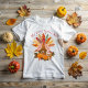 The adorable baby t-shirt from the "Thanksgiving Abundance" collection features a festive and playful design that captures the essence of this holiday. On the front of it, a funny, very colorful turkey stands out that radiates joy and curiosity, accompanied by the phrase "My first Turkey Day", which adds a touch of fun to the garment. On the back of the shirt, we find the phrase "let's take on the world!", expressing the spirit of a baby full of energy and desire to discover the world. This charming design is perfect for your little one to celebrate their first Turkey Day with excitement and joy, ready to take on the world and enjoy all the wonders life has to offer!