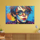Otis Porritt's digital artwork presents an arresting close-up portrait, bursting with an electrifying palette of hot pink, vivid yellow, and intense blue. The subject's face is rendered with bold, contrasting color blocks and a dynamic, pointillist-like texture, creating a modern pop art aesthetic. Piercing blue eyes hold the viewer's gaze, while a stark black streak descends from one eye, adding a poignant touch. The vibrant, almost chaotic energy of the multi-colored hair and dotted background amplifies the work's striking visual impact.