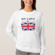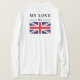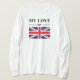 Fira kärlek med den här snyggten "Min Kärlek" T-shirt med elegant typografi och en pulserande illustration av flagga i Storbritannien (Union Jack). Högupplöst vektor-stil-design med ett rent, minimalistiskt utseende - perfekt för utskrift på T-tröjor