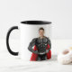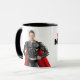 Personlig passfoton av en muskulär superhjälte som bär ett rött landskap med ord "Min Pappa, Min Hero". Den här roligten är en gåva till honom för hans födelsedag, fars dag eller speciella dag. Du kan anpassa texten, mugg inuti färg eller ljuga om designen.