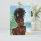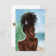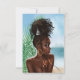 Mya Beach Tack You Card, har en gudinna med braider och pärlor mot en strandbakgrund.