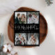 Modern och elegant multifoto-helgdag för nyfödda som firar sin första jul tillsammans som make och hustru med en typografiktext som säger "en mycket bunden helgdag". Bakgrunden är svart.