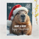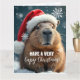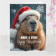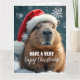 Skicka lite julklapp den här julhelgen med det roliga julkortet som innehåller allas favoritdjur - kapybara! Det här kortet, som är utslaget i en jultomtehatt och omringat av snöflingor, ger en extra dos av humor till dina semesterhälsningar. Perfekt för att du ska få en snabb känsel i jultraditionerna, så får du ett skratt från alla som kärlek kapybaras och uppskattar lite lättskrämd helgdag roligt!