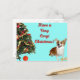 Denna vykort presenterar vår landCorgi, lite Dott, från de Dott för boken "lite fynden ett hem," sitta på en turkosbakgrund, med ett stort leende på henne ansikte. En röd boll, en julgran, och en hundkex avslutar designen tillsammans med ord, "har mycket jul för en Corgi.",
