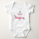 Utformningen innehåller texten "eget namn" + "mycket första jul" + "anpassningsbar år" tillsammans med en vattenfärg Julgran. Om du vill anpassade texten trycker du på för att anpassa. Färger är i fessionsrött och grönt färg.