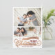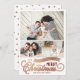 Prisvärda anpassningsbar tryckte ut julfotokort med en enkel DIY-mall för anpassning. Den här roligten är utformad för vit typografi i burgundy- och faux-folie ro guld. Budskapet löd: "Önskar dig mycket God jul". Mallen har plats för tre familjefotografier. Använda verktyg för att redigera typsnitt och färg. På motsatt sida finns en koordinerande abstrakt punkt mönster eller använda i utrymmet för att lägga till fler foton och text.