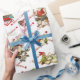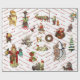 Mycket roligt med mycket vintage julomformning Papper En mängd antika julillustrationer spreds ut och ett rött skript God jul bakgrund