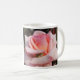 Mycket liten grön groda i rosa ros "som hoppar" kaffemugg