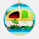 Mycket liten zigensk husvagncasa julgransprydnad keramik