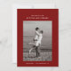 Kortet med datum för bröllopet har ett enda, centrerat foto av paret. Ovanför fotot visas deras namn i en ren, modern typsnitt. Nedan är bröllopsdatum och plats snyggt skrivna. Designen är minimalistisk med gott om vitt utrymme, med fokus på enkelhet och elegans.