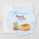 Dubbel glädje på lilla sötis födelsedag. Säg tack till lilla sötis födelsedagsgäster med detta söta tackkort. Lilla björnen är björnigt söt och jordgubbarna är jordgubbigt söta.