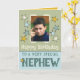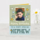 Grattis på födelsedagen till en mycket speciell brorson. Lägg till ett foto och ett meddelande. Grönt, blått/flerfärgat hälsningskort med stjärnor.
