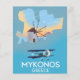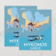 Mykonos Grekland - grekisk semester affisch karta över ön.