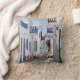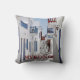 16 tum x 16 tum dekorativ kudde med en bild av en vattenfärgad målning av ett fyrkantigt kullstensfält på ön Mykonos, en grekisk ö, en del av Cykladerna, som ljuger mellan Tinos, Syros, Paros och Naxos. Blått bakåt.