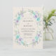 Denna design har en mjuk akvarellpalett av myntfärgad grön och lavendel mot en varm krämfärgad bakgrund. Ömtåliga lavendelkvistar och bladrik eukalyptus omger eteriska rosor för att skapa en lugn botanisk estetik. Perfekt för en romantisk vårhögtid, fångar konstverket en känsla av lekfull elegans och naturlig skönhet.