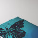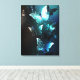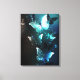 Myntfärgade nattlysande fjärilar på svart abstrakt bakgrund.