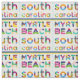 En sömlös, färglös textkonst mönster Myrtle Beach, South Carolina. Linjer av blå vinkar och guldsill gult sand. De amerikanska stränderna har en serie planer. Ni kan använda fantastisk och biet i textilväven för alla hantverks- eller konfektionsprojekt och mycket annat. Var bara kreativ, gör något elegant och var lycklig!