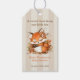 Lägg till en charmig finish på era babyshower-favoriter med denna hösträv-gavetikettt. Med en liten babyräv som vilar i en mysig säng av löv och pumpor, är denna söta skogsdesign perfekt för att knyta på favoritpåsar, godisburkar eller små presenter. Personifiera med den blivande mammans namn, evenemangets datum eller ett speciellt tack till era gäster.