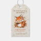 mysig babyshower för lilla räven med hösttema - m presentetikett