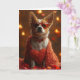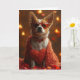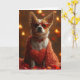 Gör Alla hjärtans dag speciell med denna mysiga Basenji-design! Konsten visar hunden på en mjuk röd filt med en hjärtkudde, omgiven av ljus och rosenblad. Ett hjärtligt kort för Basenji-entusiaster.