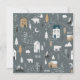 Vinter nordisk by bakgrund, hus, grönt träd, berg, moln, björn, skandinaviskt sömlöst mönster, julfirande inslagspapper, Nyår hantverksmönster, handritad täckande bakgrund