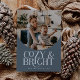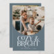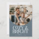 Ett elegant julkort med en typsnitts text som säger "mysigt & ljust" under ditt bågformade foto. Lägg till ett andra foto på baksidan tillsammans med ditt meddelande. Bakgrunden är skifferblå.