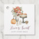 Elegant vattenfärgsdesign för höst- eller höstbröllopsbrunch, förlovningar, bröllop eller dessert-tema för repetition middagar med "kärlek är sött" och din anpassade text under en illustration av höstdesserter, vilda blommor, ljus och en pumpa.