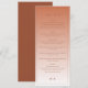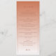 Denna eleganta bröllopsmeny har en vertikal layout med en varm persikofärgad bakgrund, vilket skapar en inbjudande och sofistikerad atmosfär. Designen inkluderar ren, serif-typografi för sektionsrubriker och ett mjukt brunt kursivt skrivstil för titeln "meny", vilket förstärker dess klassiska charm. Varje rätt är snyggt organiserad i distinkta sektioner - FÖRRATTER, SALAD, HUVUDRÄTT och EFTRÄTTER - med tydliga mellanrum som säkerställer läsbarhet. Den övergripande stilen är raffinerad och välkomnande, perfekt för formella middagar, medan monogrammet längst ner lägger till en personlig touch till denna stilrena mall.