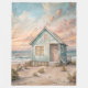 Fly till stillhet med denna charmiga kuststugans strandhusdesign, vacker taget i mjuka akvarellfärger. Med lugna pastellhimlar, lugnande havsvågor och stilla sandstränder för denna konstverk en avkopplande kustatmosfär.