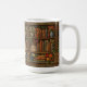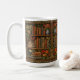 En mysig retro bokhylla med en ångande kopp kaffe / te - vackra blommor och fjärilar !