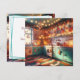 mysig gammalmodig köksmiljö i teal med massor av högtidsdekorationer och julgransbelysning och retrodetaljer. Vi önskar dig en mysig gammaldags jul och ett Gott Nytt År. Texten på baksidan av detta julkort kan anpassas, så att du kan lägga till ditt namn om du vill eller ändra julhälsningen.