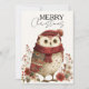 Denna charmiga illustration visar en söt uggla iklädd en mönstrad röd halsduk och matchande mössa, omgiven av ömtåliga vinterblommor. Perfekt för julkort, säsongsdekorationer, mysiga vinterpresenter eller skogsdesigns. Dess fantasifulla och festliga stil gör den till ett förtjusande val för uggleentusiaster och de som uppskattar rustik vinterkonst.