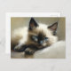 Ljug någon när du släpper dem en överraskningssedel på det här hedervärda kattkortet! "Mysiga assistenten" är en närliggande porträtt-målning av en söt siamesisk kattunge som vilar på en filt av grädde färgad. Kattungen har ett häpnadsväckande blått ögon som är fängslande och mjuk fluffy päls. Kattens uttryck är avslappnat, innehåll, och verkar utstråla en känsla av lugn och värme, skapar det som en perfekt biet av bra konst för alla som kärlek katter. Den allmänna stämningen i målningen är lugn och lugn, och den varma paletten och de mjuka penseldrag som används för att skildra kattungen och filten skapar en känsla av nyfikenhet och komfort. Det är en underbar biet som fångar skönheten och lugnet hos en kattdjur vän.