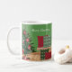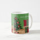 Mysiga Bench God jul Mugg är ett unikt och festligt sätt att fira helgdagarna med familj och vänner. Den har en mysigt scen med dekorativ kudde, gåvor och Julgran. Anpassa objektet för speciell personlig beröring.