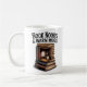 I mugg visas en härlig vintage-inspirerad illustration av en glödande bok nook som gömts inuti en skorsten av gammalt bokar, parad med ett ångande keramiskt mugg. Designad för dem som kärlek som fyller en varm drink med sin favoritläsning är denna mysiga design perfekt för bokmaskar och te eller kaffe älskare som njuter av fredliga, litterära ögonblick.