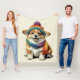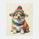 En mjuk, mysigt filt som innehåller en vidsträckt corgi-valp med ett lycklig-uttryck, som har en vibrerande, färgstark hatt och motsvarande scarf. Perfekt för att tillföra värme och skärpa till vilket utrymme som helst!