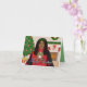 Afrikansk kvinna dricker kakao i hett på juldagen medan den är inslagen i en mysigt filt. Anpassade hälsning.