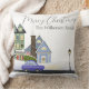 I anpassningsbar har dekorativ kudde ett mysigt vinternatttema. Bilden av en liten bil är att köra förbi hus i en liten by eller stad vid jul kväll, med träd på tak.