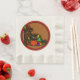 Denna Thanksgiving har Helgdag Napkin med en land-stil-design av oliv grönt och röd pläterad bakgrund i blek bakom ett nedfläckad glas som ser torkad kornuskopi fylld med färska frukter och grönsaker och dubbla yttre gräns (rödpläterad och fast svart). Se koordinera produkter från den digitala konstnären, Leslie Sigal Javorek, på HoMeArts.