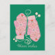 Ett par rosa mittens adsorberade med intricate mandala mönster vilar mot en pulserande grönt bakgrund. Varje ullhandtag har hjärtaccenter och är sammankopplad med en viskartad sträng med fluffy pom-poms, som utesluter fektiv värme och munterhet önskemål.