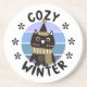 En söt uggla med vinterhalsduk och den stora vintern ord lycklig. För alla, som kärlek vinter vibes och söta djur.
