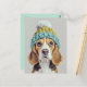 Mysigt Beagle i en Sticka Hat i vintern Vykort