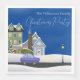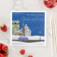 I anpassningsbar har party-servetter en mysigt vinternattfråga med mörk blått bakgrund. Bilden av en liten bil är att köra förbi hus i en liten by eller stad vid jul kväll, med träd på tak.