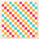 Varannan röd, orange, teal och vit ruta skapar ett färgglatt och livfullt rutnät som förmedlar en energisk och lekfull ton.