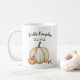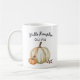 Ta mysigt tag i din kuppa från det här autoala mugg. Öka upplevelsen av att njuta av en pumplatte. Det ger en underbar gåva till ett kaffe eller te älskare Ingen pumpspikat är komplett utan en passande, autumnal mugg för att lägga in den! Den här designen har texten "hej pumpkin" och en söt pumpkinstruktion. Lägg till ditt namn för en anpassningsbar fall mugg.