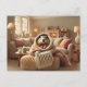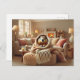 Det här charmerande vykortet fångar vinterns skärpa med en härlig bild av en marschinerad snful i en varm filt. Grundhogens uttryck i innehåll och det upprörande mjuka strukturen av filten och omgivande rum väcker känslor av komfort och avslappning. Den varma färg-paletten med mjuk , krämer och persikor bidrar till lugn. Perfekt för att skicka hälsning, tackkort eller bara en aning hjärtklappande munterhet till vintern är det här vykortet säkert ett leende för någons ansikte. Det är en ljuv påminnelse om det enkla nöjet att vara varm och mysigt under de kallare månaderna.