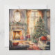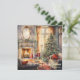 Mysigt jul insida med eldstad och Helgdagskorten kring Hälsning vid jul i Träd,