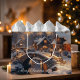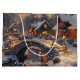 En julklapp med en vattenfärgad illustration av en månbelyst by på en snökväll med en flodvåg som går genom ljusbelysta stenburkar och charmeringsstenar som går broar och vidhäftade mjuka helgdag. God jul hälsning visas på säckens framsida och baksida. Hälsning kan ändras till din inställning eller tas bort helt.
