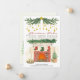 Meddelandekort för flytta av personlig helgdag. "Jul Önskemål från vårt nya hem" är inramat med ett gräs-trädgård, droppar med guld-prydnadsföremål och en mysigt eldstad med julstrumpor, ljus, en miniskrukt julgran och ett litet skifte. Mallen är inställd för att du ska kunna lägga till namn och din ny adress. Baksidan av kortet har en enkel skogsscen med träd och snö.