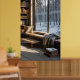 mysigt nordiska nook med möbler, enkelt trä poster
